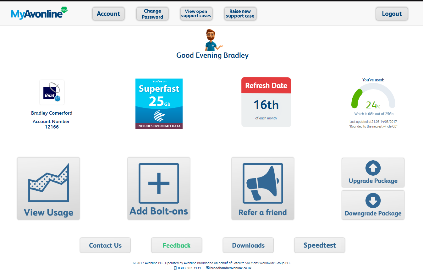 Avonline provided Satellite Broadband via ViaSAT and Avanti. An average day would consist of assisting many customers with resolving connectivity issues and other issues that they may be facing on their broadband, using diagnostic tools such as Force Ranging, Ping, Terminal Controls and data usage graphs, as well as DNS, Reverse DNS, MX and Mail Server checking as well as IP addressing management and blacklisting. During my time, myself and a colleague also developed "MyAvonline", a customer facing portal with Admin management for Tickets that allowed customers to view their Service Data Usage, and perform self-diagnostics. Demo here: MyAvonline